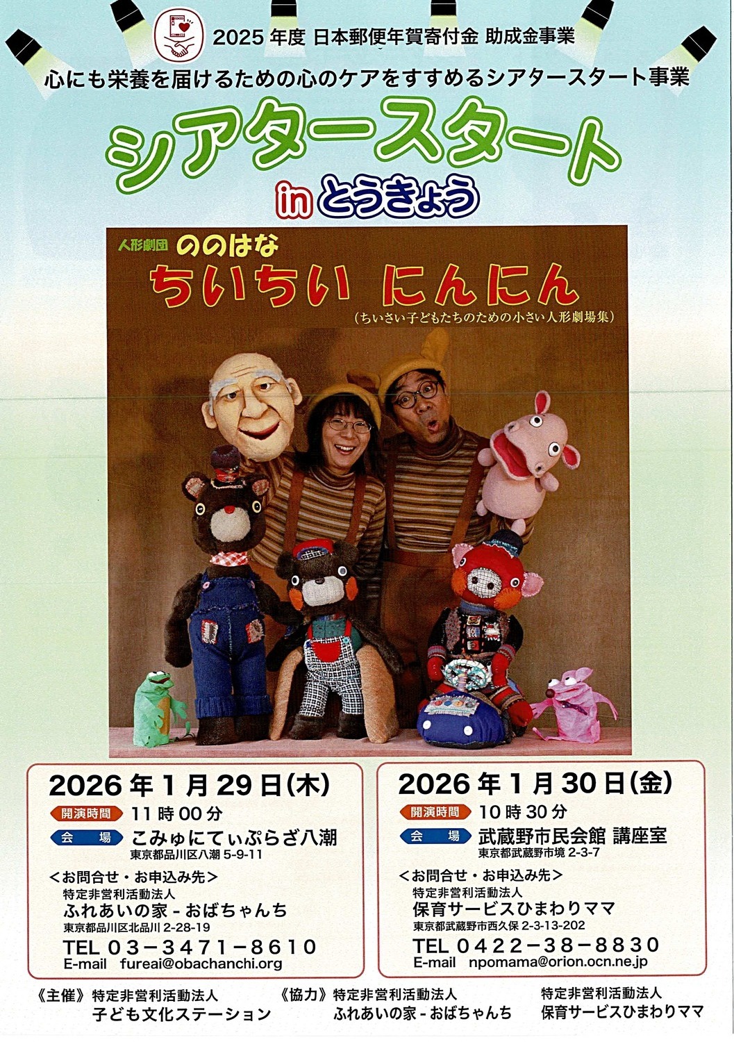 生まれて間もない子どもたちがはじめて出会う舞台「シアタースタート」がほっとサロンにじっこ@八潮にやってくる!