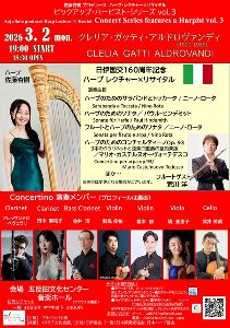 20世紀イタリアの伝説的ハーピストが初演したハープ作品を特集。 音楽博士・ハープ奏者の佐藤杏樹プロデュース、親しみやすいトーク付き。映画音楽でお馴染みロータの歌心ある作品や、重厚なヒンデミット。テデスコの小協奏曲は、クラリネットと弦楽による珍しい8重奏で、ハープの名人芸的な足さばきとスペイン舞曲の情熱をお届け! 日本でも活躍するイタリア人のアレッサンドロ・ベヴェラリ氏ほか、豪華ゲスト多数。