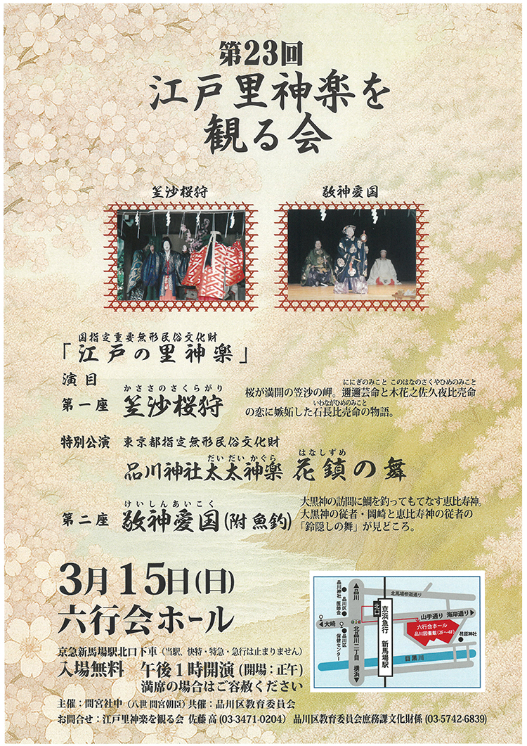 ■UR:『第23回江戸里神楽を観る会』のお知らせ【3月15日(日)開催】|品川区