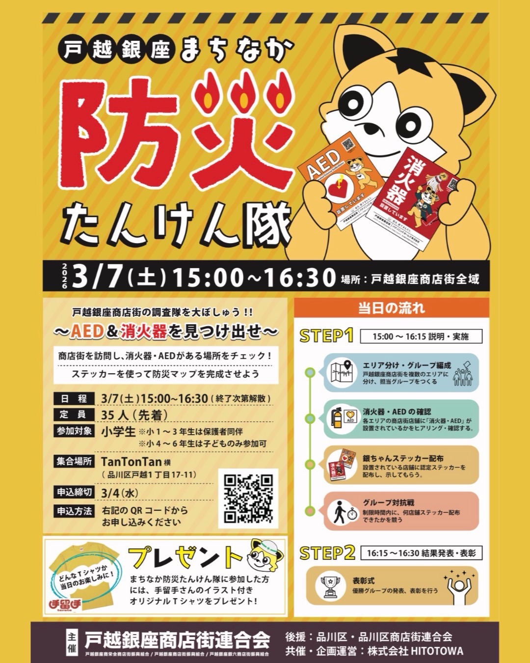 【3/7まちなか防災探検隊】戸越銀座商店街を大調査!!〜AED・消火器を見つけ出せ!〜