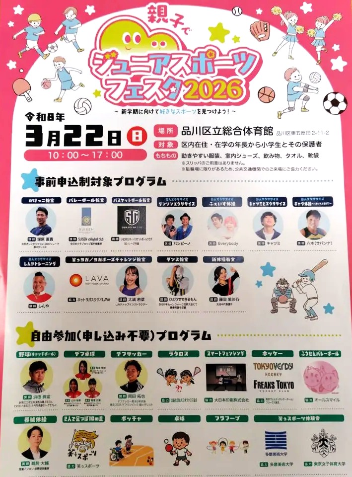 ■詳細はこちら:親子でジュニアスポーツフェスタ2026〜新学期に向けて好きなスポーツを見つけよう!〜