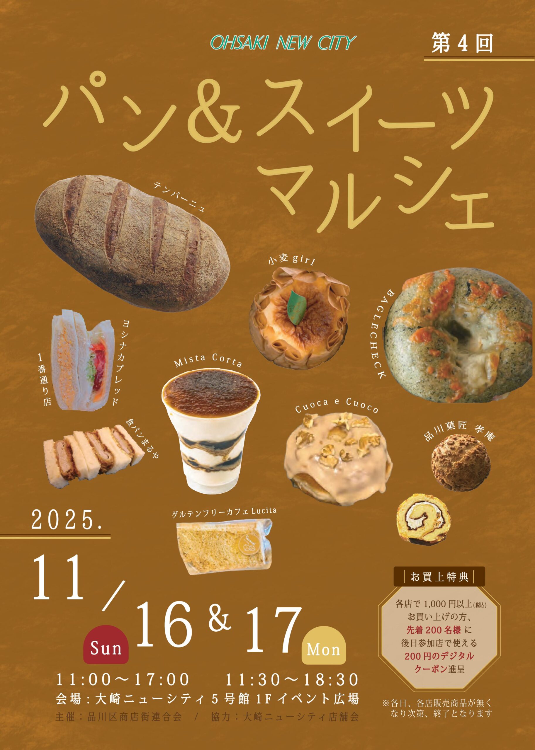 品川区内の人気店があつまって、パン&スイーツマルシェを開催します。