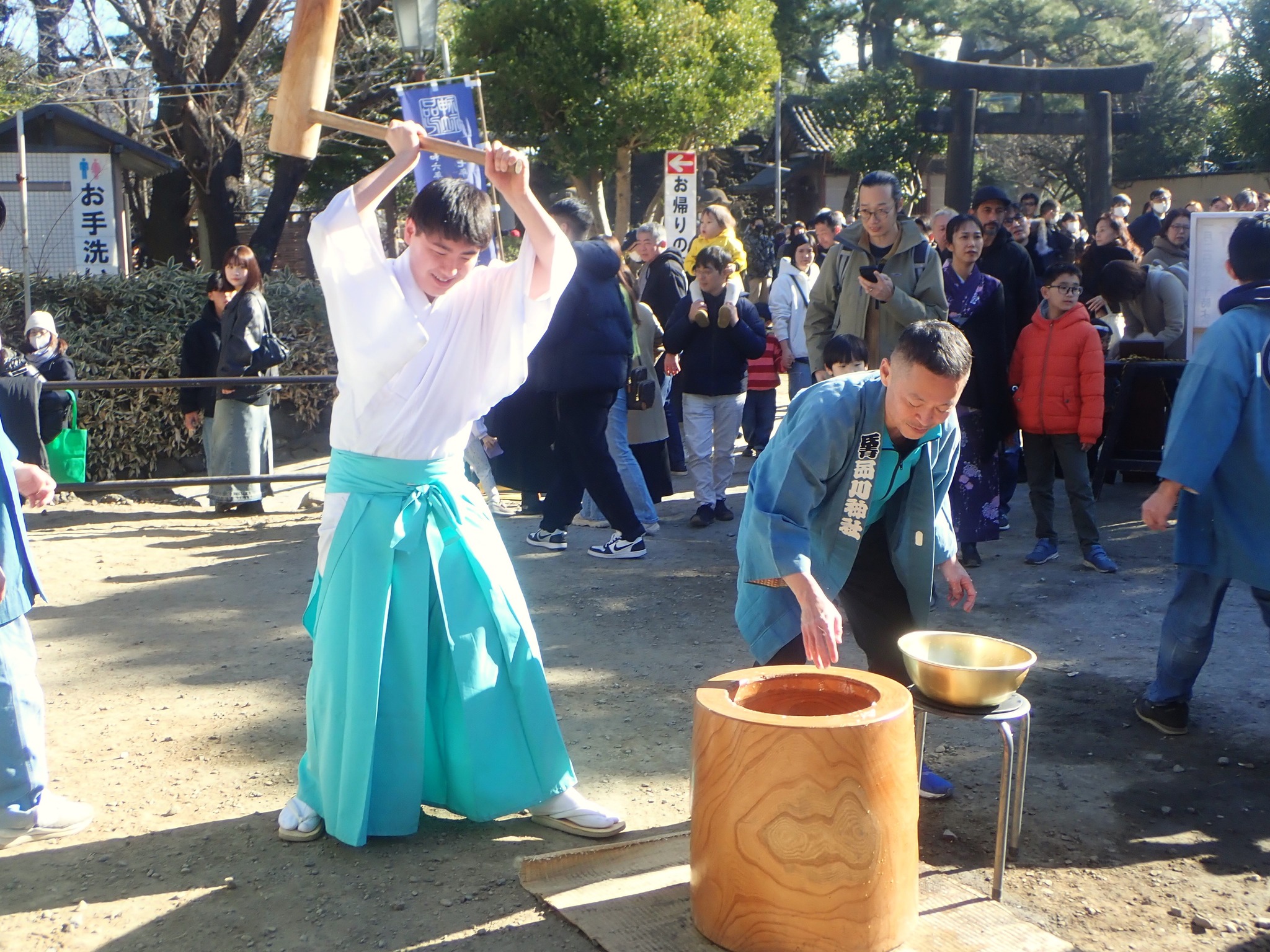 毎年、正月2日に氏子青年会主催で開催される餅つき大会で、50㎏程のもち米をつき、きな粉・あんこ・からみ餅として参拝者に振舞われ、例年多くの人が訪れる。また希望者は餅をつくこともできる。