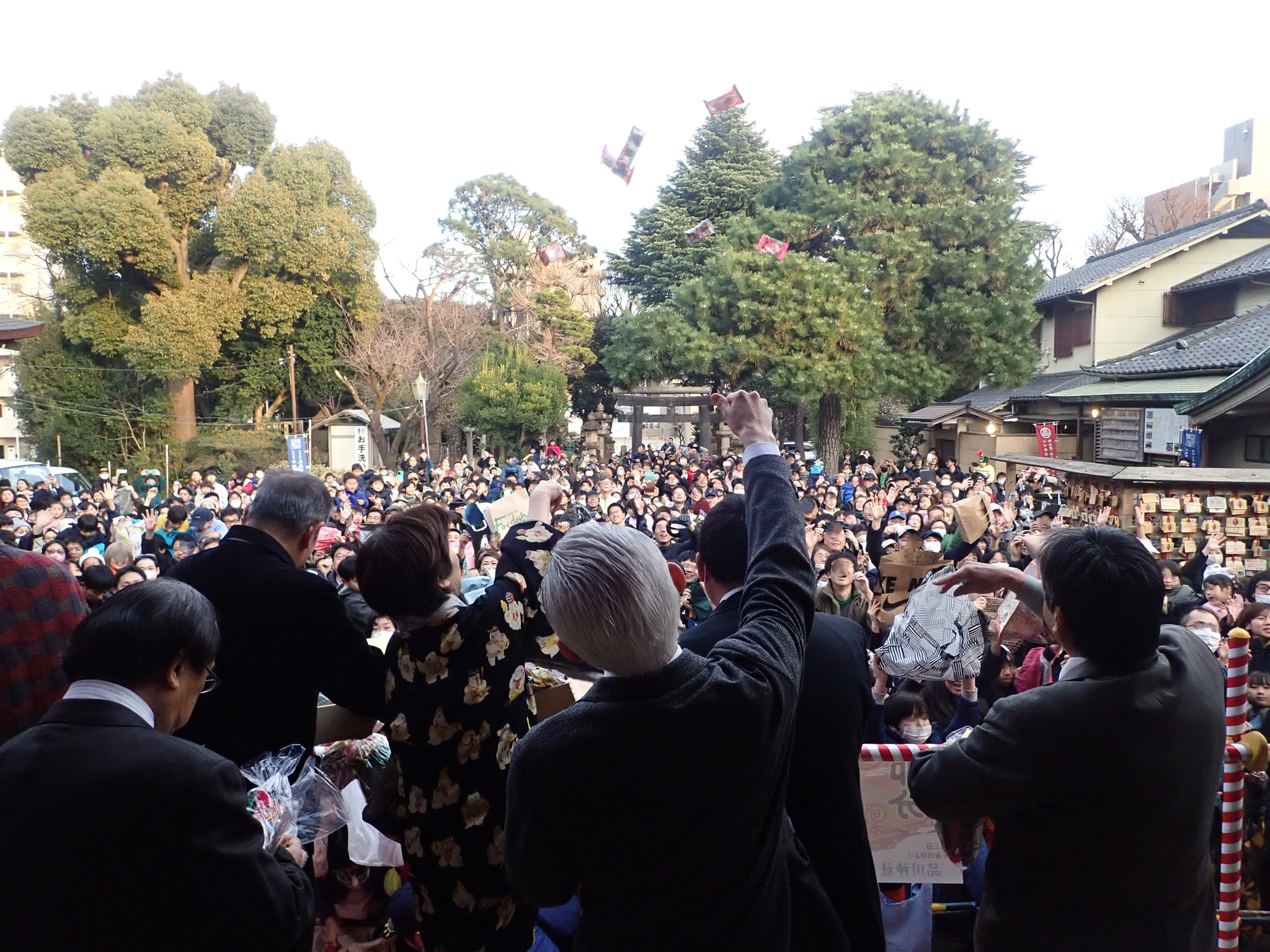 ■日時:2026年2月3日(火)16:00~■会場:品川神社本殿前■内容:15:30頃から神楽殿にて大黒の舞が披露され大黒様より福銭がまかれます。16:00から本殿にて祝詞奏上、役員・年男昇殿参拝ののち豆まきが行われます。