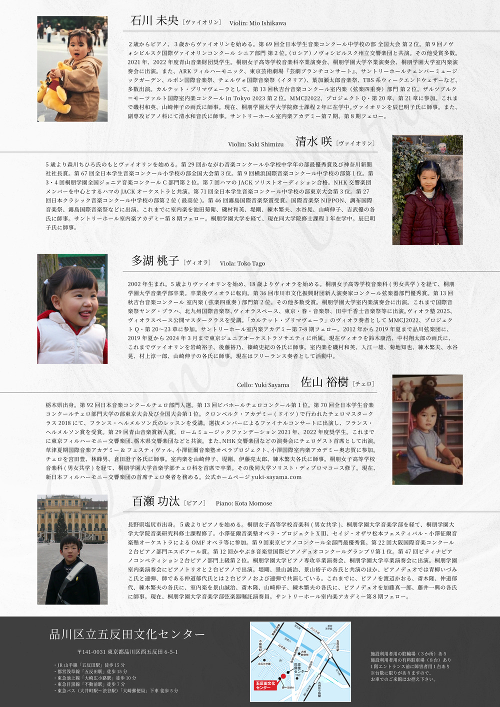 Vl. 石川未央、Vl. 清水咲、Va. 多湖桃子、Vc. 佐山裕樹、Pf. 百瀬功汰