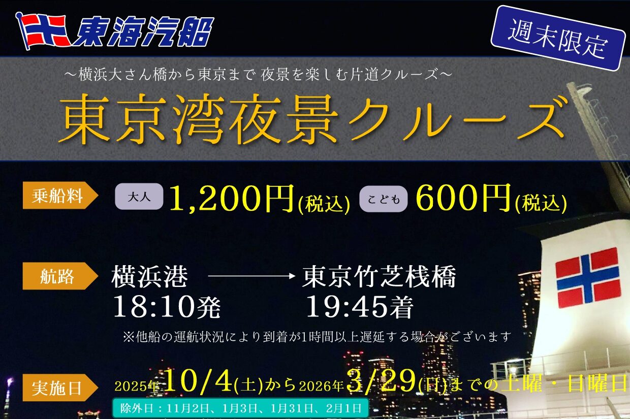 横浜~東京「東京湾夜景クルーズ」 (2025.10.4~2026.3.29土曜・日曜限定)
